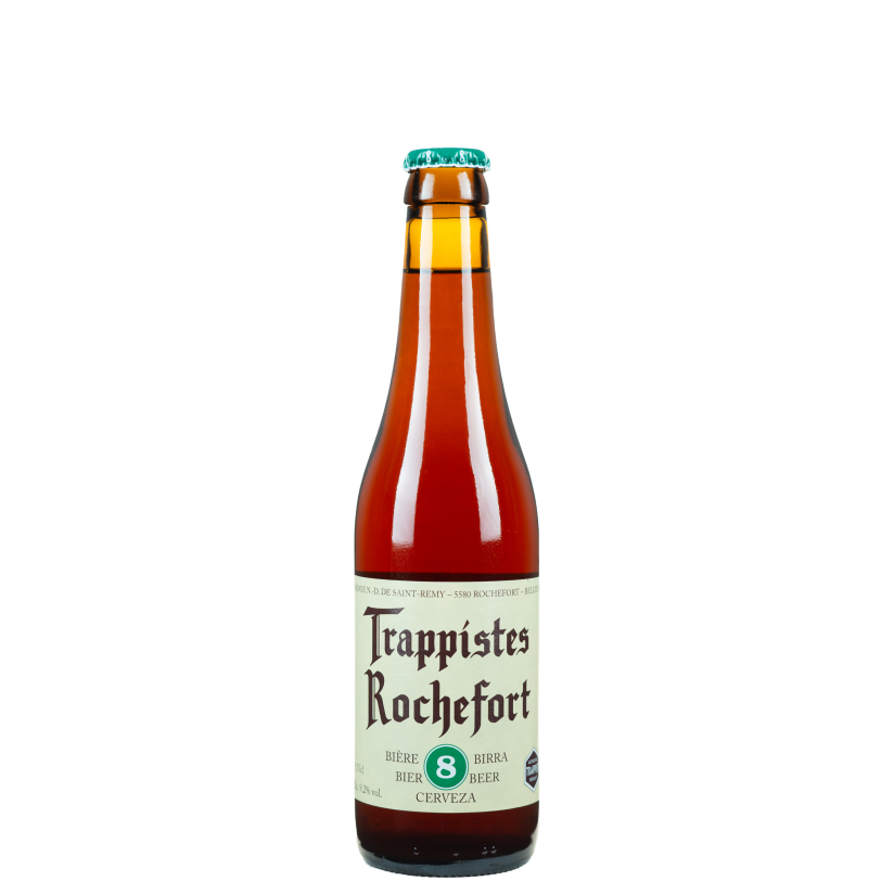 Rochefort 8 hat eine tiefbraune Farbe mit einer reichhaltigen und cremigen Schaumkrone. Das Bier hat einen Alkoholgehalt von 9,2 % und ein komplexes Aroma mit Noten von Trockenfrüchten, Karamell, Schokolade und Gewürzen.