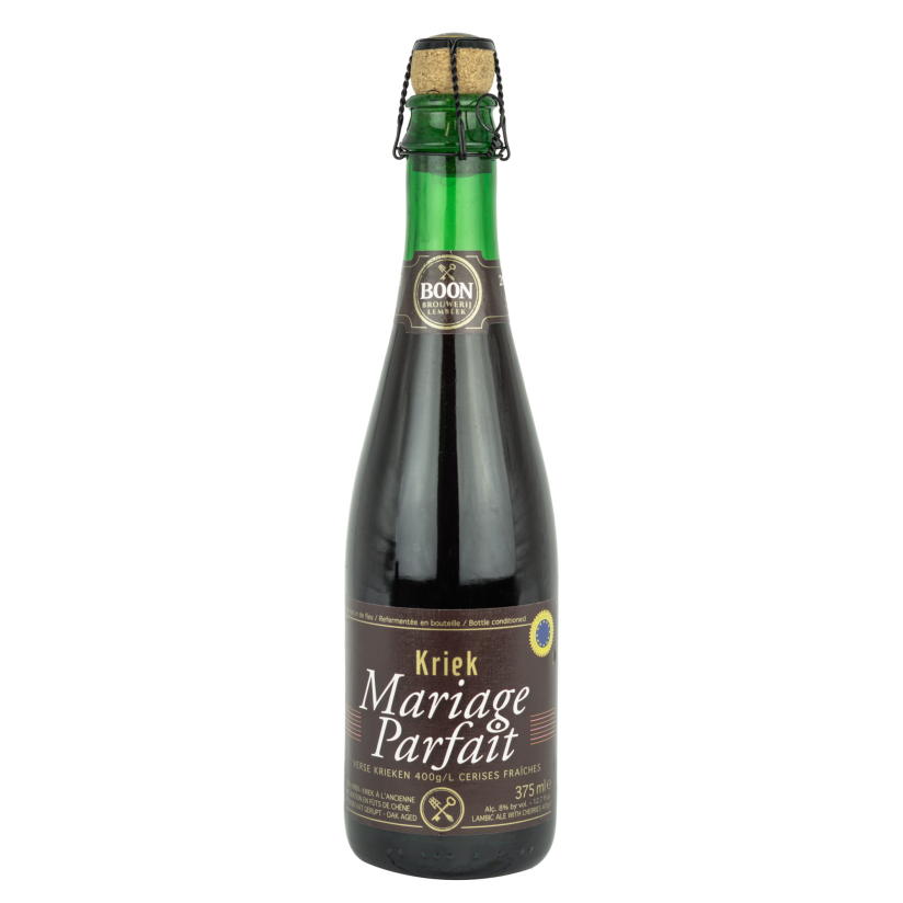 Kriek Mariage Parfait ist ein Old Kriek, der aus stark gebrautem, 18 Monate altem Lambic hergestellt wird, dem 400 Gramm frische Wildkirschen pro Liter zugesetzt werden. Dieser Prozess verleiht dem Bier einen komplexen und einzigartigen Geschmack mit einer perfekten Balance zwischen sauer und süß.